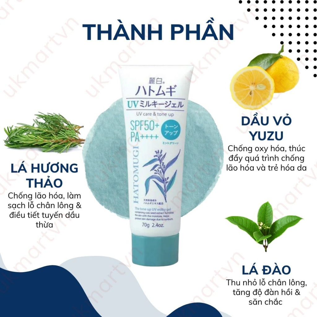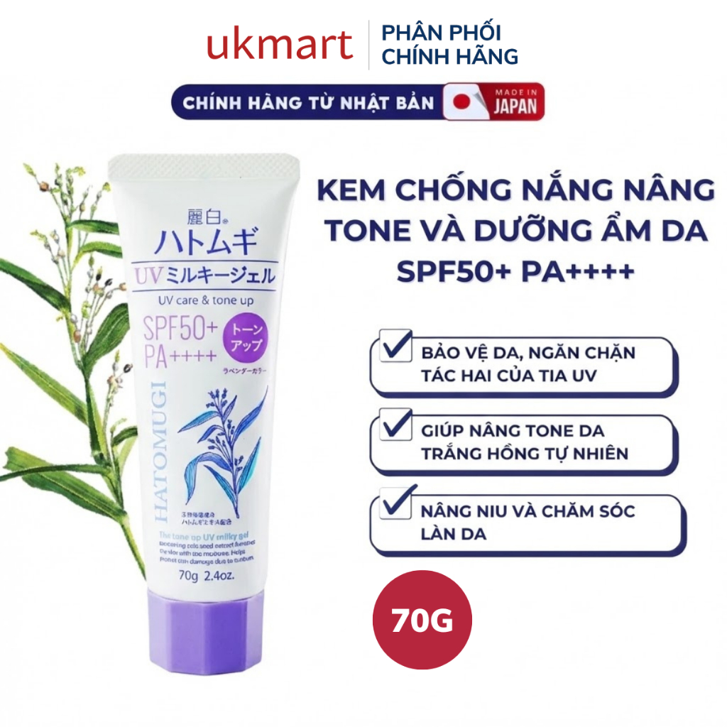 Kem Chống Nắng Hatomugi The Tone Up UV Milky Gel SPF50+ PA++++ 70g