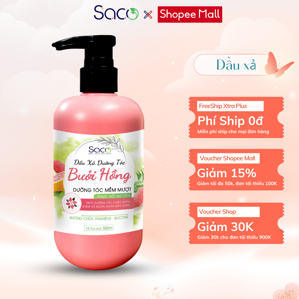 Bộ đôi dầu gội xả SACO bưởi hồng bồ kết ngăn ngừa gàu, giảm rụng, suôn mượt 500ml/chai