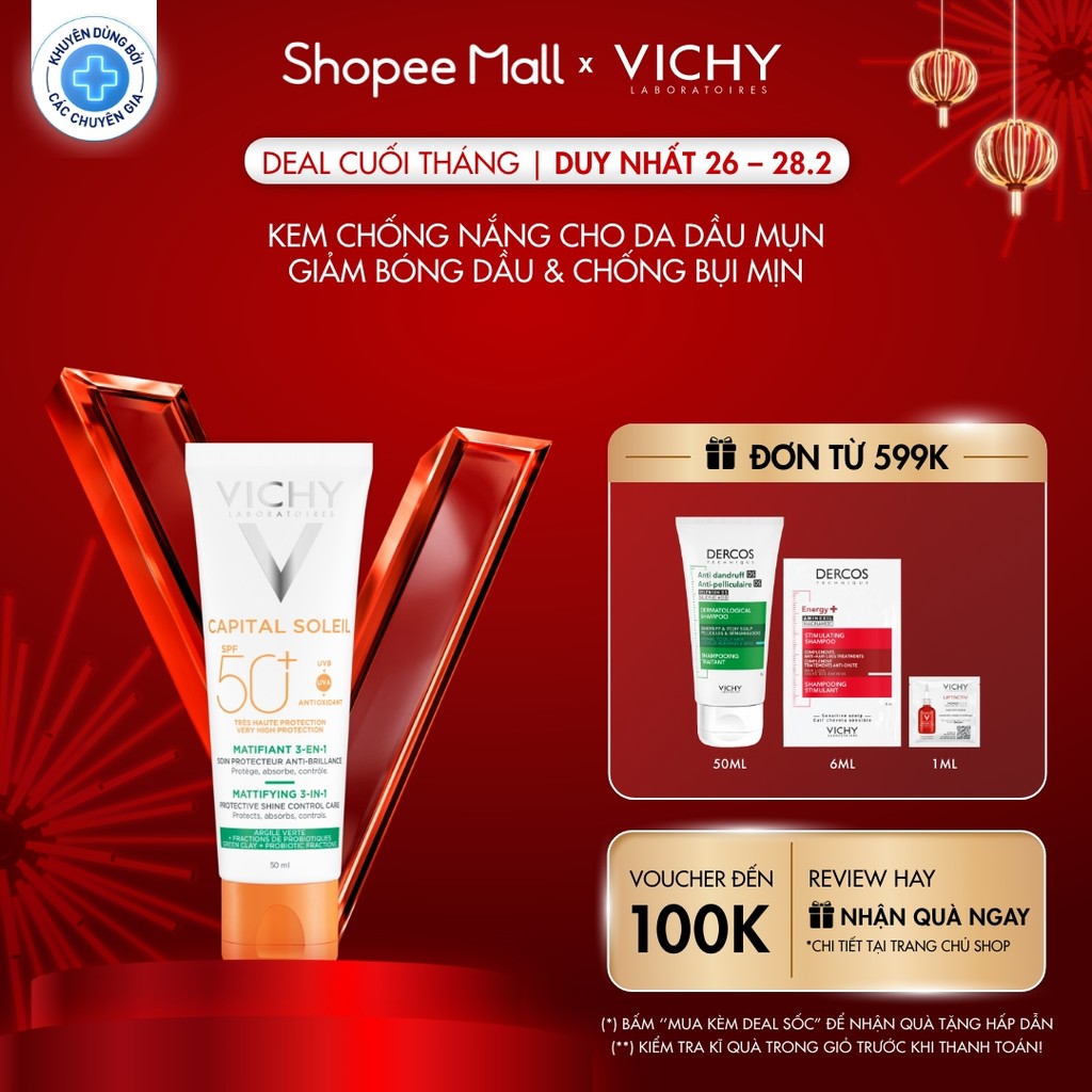 Kem Chống Nắng UVA+UVB Chống Bụi Mịn Vichy Spf50+CapitalSoleilMattifying 3in1 50ml