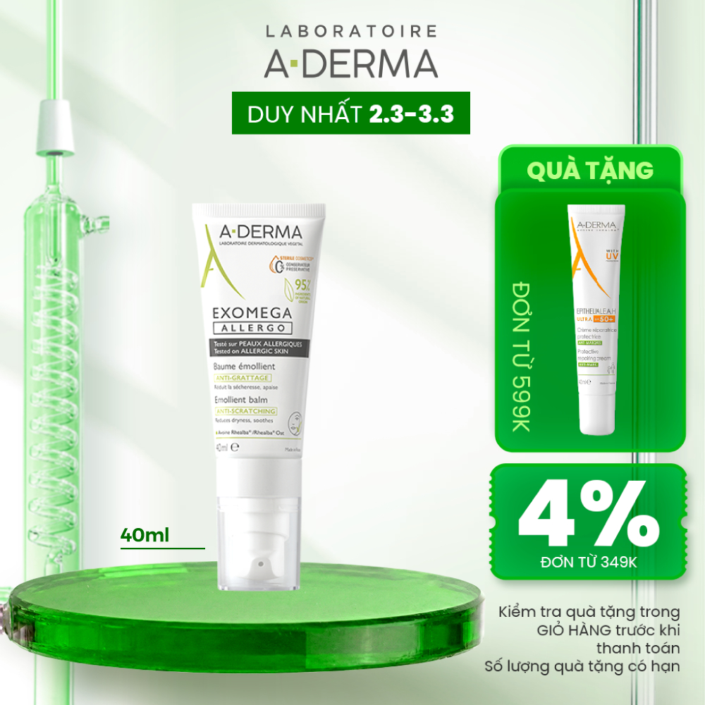 Kem dưỡng cho viêm da cơ địa, da dị ứng A-Derma EXOMEGA Allergo Emollient Balm giúp giảm ngứa, khô, kích ứng da