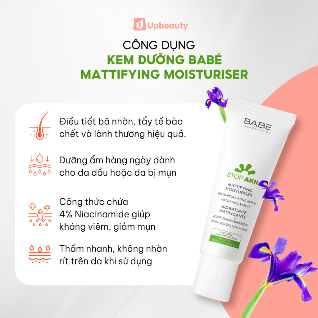 Kem Dưỡng Kiềm Dầu Giảm Mụn LABORATORIOS BABÉ Mattifying Moisturiser 50ml - Hỗ Trợ Mờ Thâm, Sáng Da
