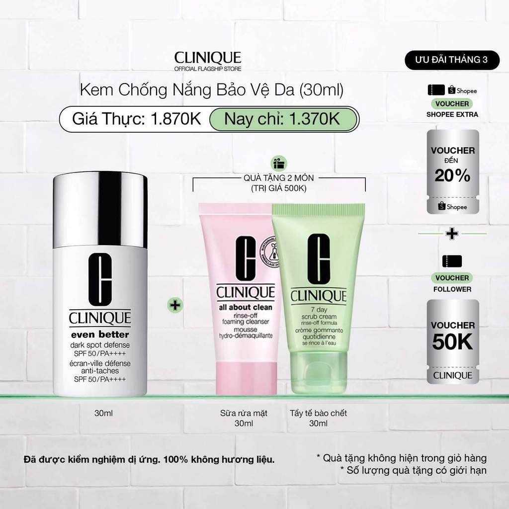 Kem chống nắng mỏng nhẹ có màu làm đều màu da Clinique Even Better Dark Spot Defense SPF 50/PA++++ 30ml - Sheer Tint