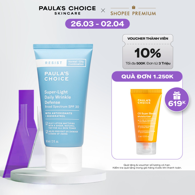 Kem chống nắng nâng tone cấp ẩm Paula's Choice Resist Super-Light Daily Wrinkle Defense Broad Spectrum SPF 30 60ml 7760
