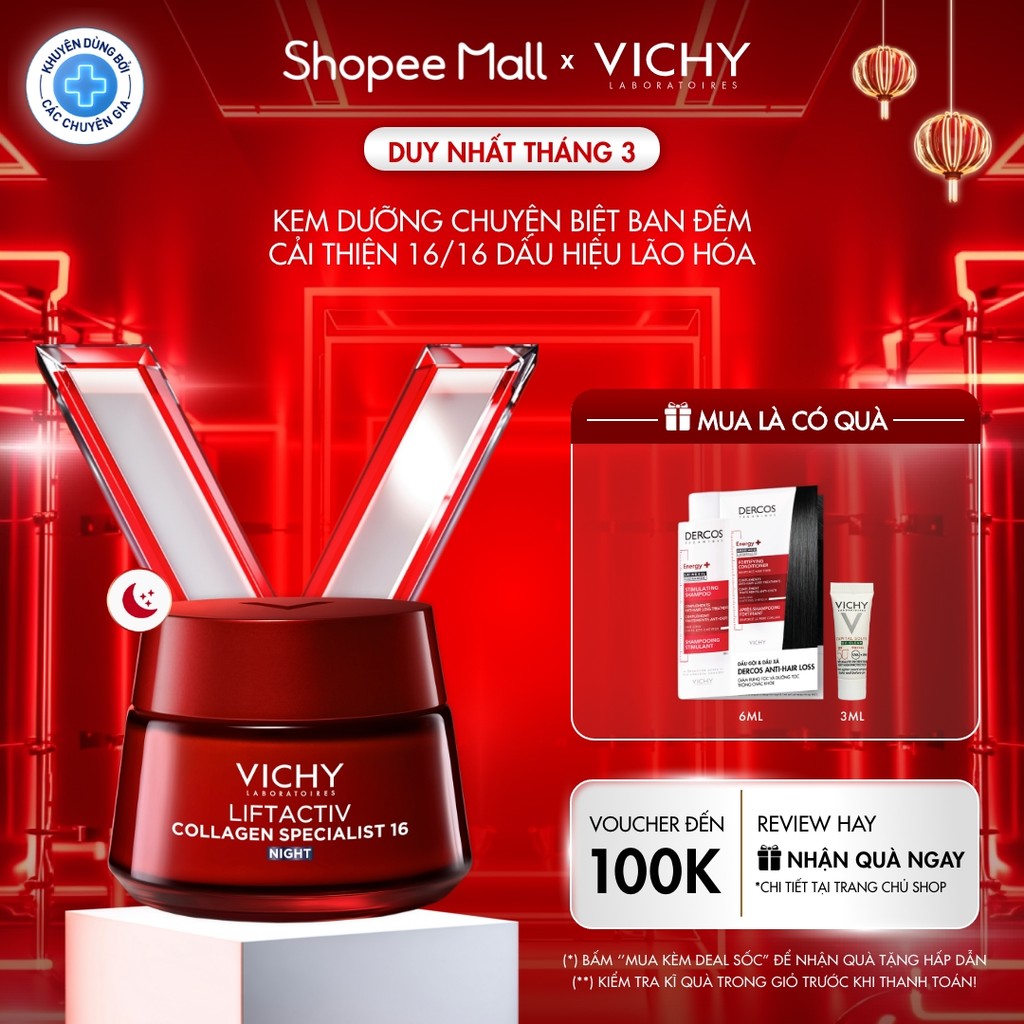 Kem dưỡng đêm Vichy Collagen 16 giúp trẻ hóa da, ngăn ngừa và giảm nếp nhăn, làm sáng da, giúp da căng đầy 50ml