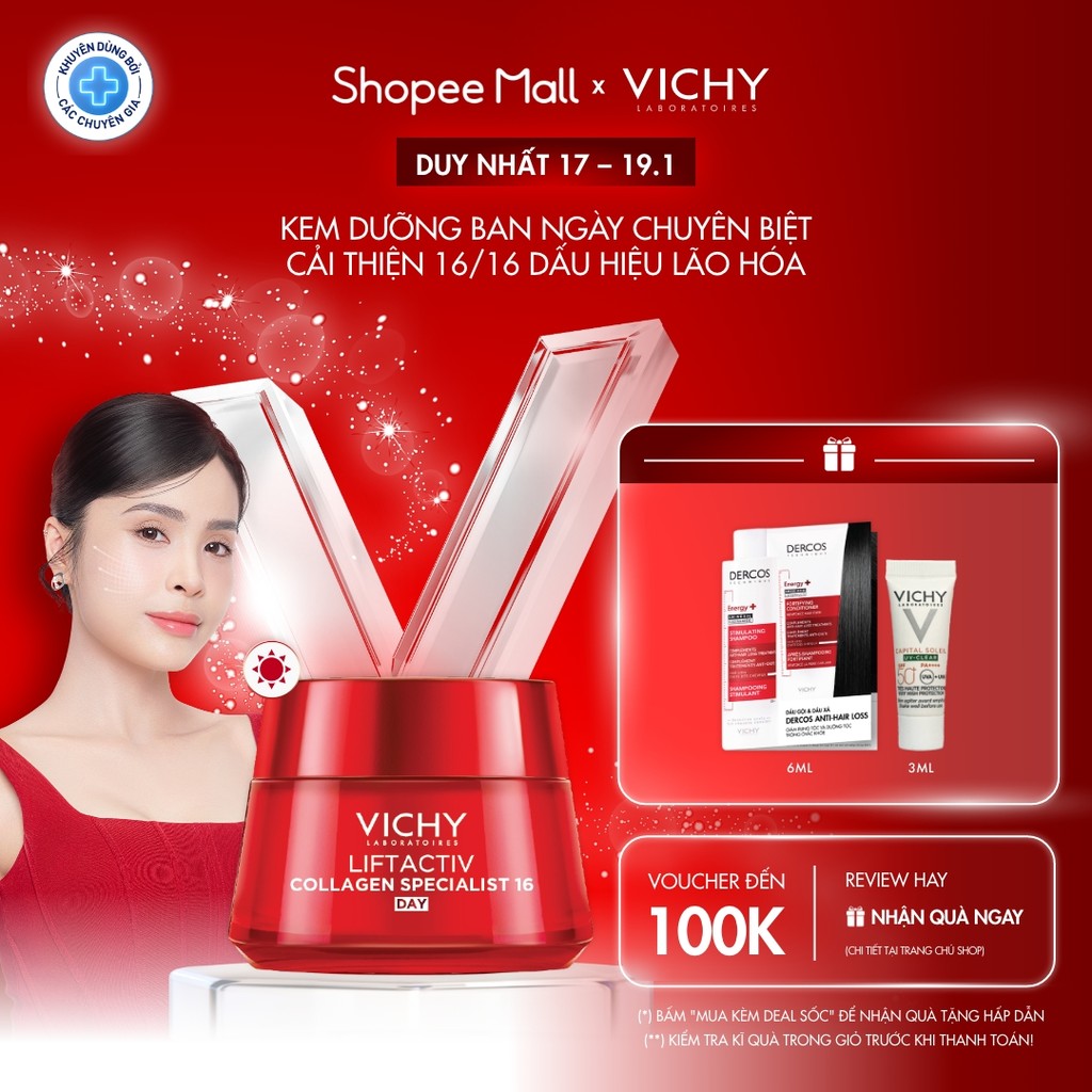 Kem dưỡng ngày Vichy Collagen 16 giúp da săn chắc, căng mịn, rạng rỡ, trẻ hóa da 50ml