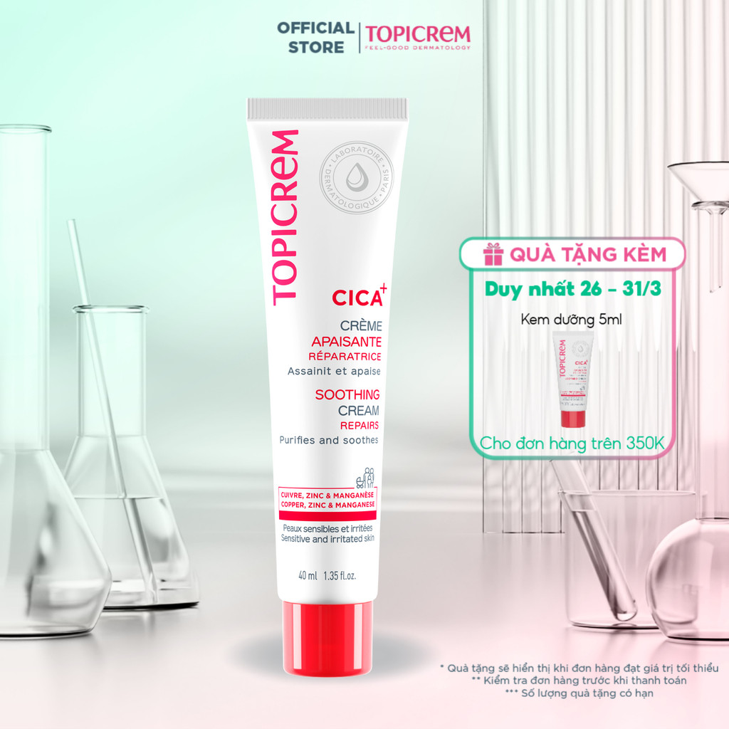 Kem dưỡng phục hồi và làm êm dịu da TOPICREM CICA+ SOOTHING CREAM 40ML