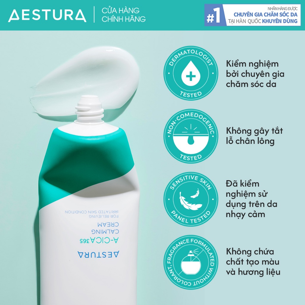 Kem dưỡng rau má B5 hỗ trợ làm dịu và phục hồi da khô/mụn/nhạy cảm AESTURA A-CICA365 Relief 60ml