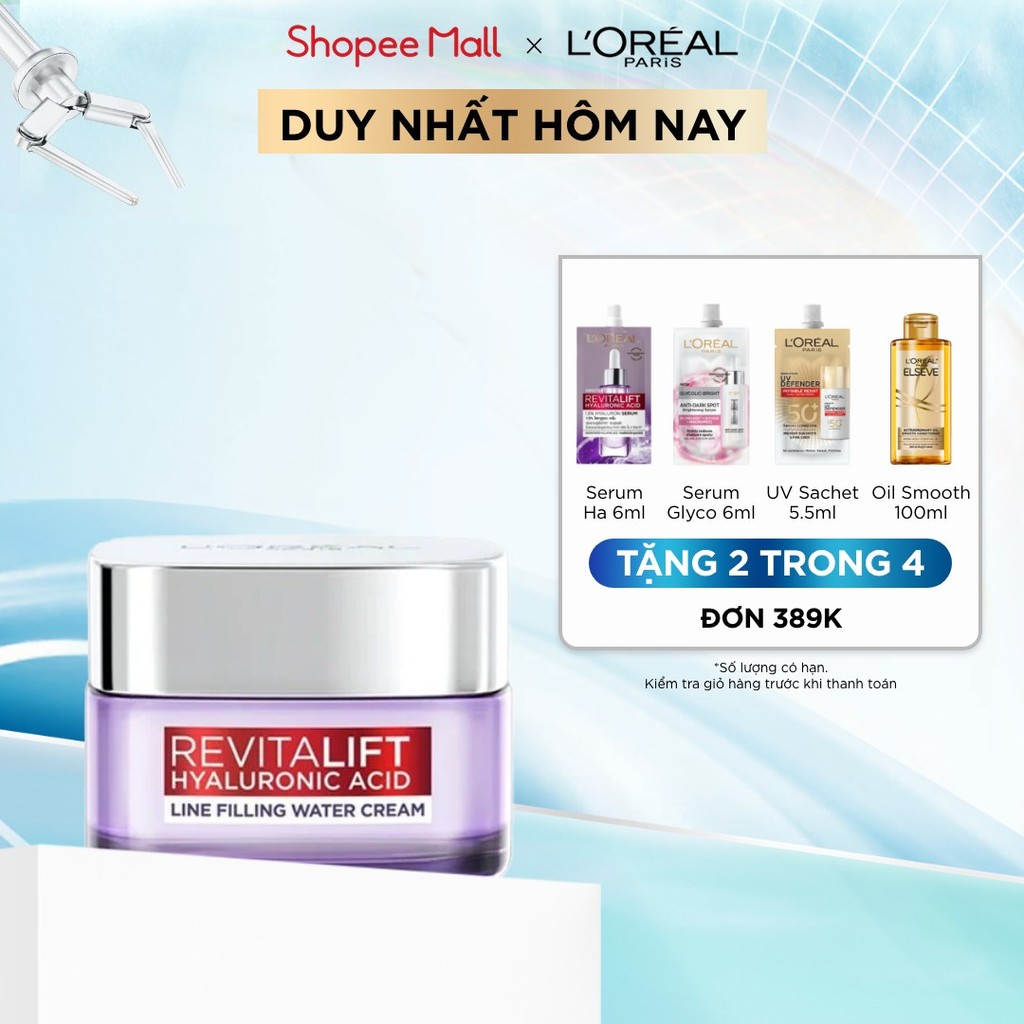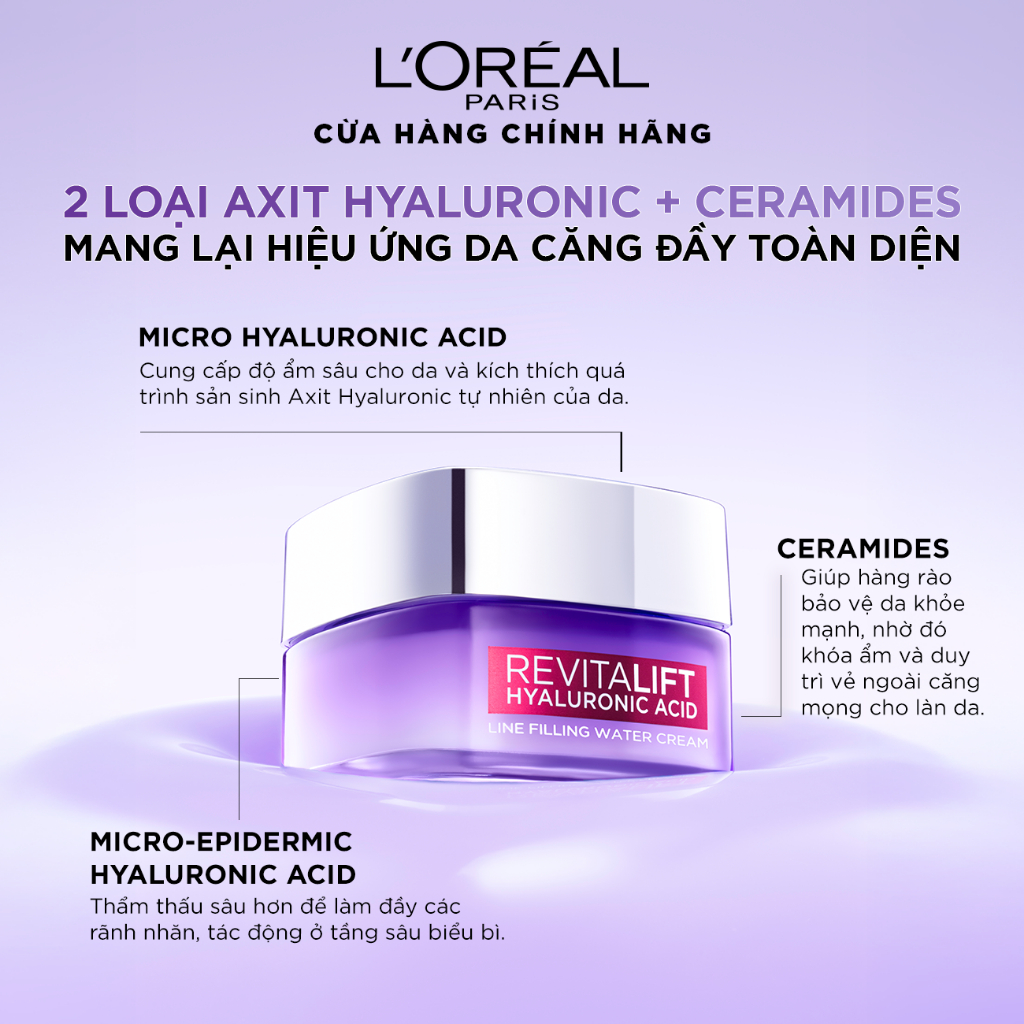 Kem dưỡng siêu cấp ẩm, giúp làm căng mượt da và giảm nếp nhăn L'Oreal Paris Revitalift 1.5% Hyaluronic Acid 50ml
