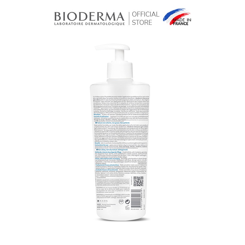 Kem gel dưỡng ẩm và làm dịu dạng gel cho da khô , da rất khô Bioderma Atoderm Intensive gel-crème 500ml