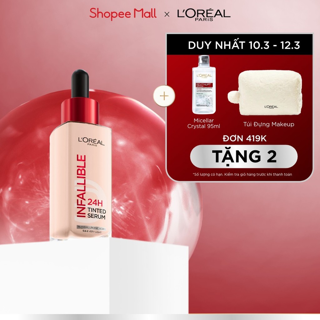 Kem nền dạng serum 24h căng mướt, tự nhiên L'Oreal Paris Infallible 24H Tinted Serum (1% Hyaluronic Acid) 30ml
