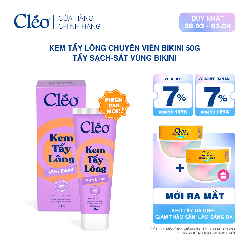 Kem Tẩy Lông Bikini, Chuyên Tẩy Lông Vùng Nhạy Cảm Cho Nữ & Nam Cleo, Tẩy Lông Sạch Sát, Không Kích Ứng 50g