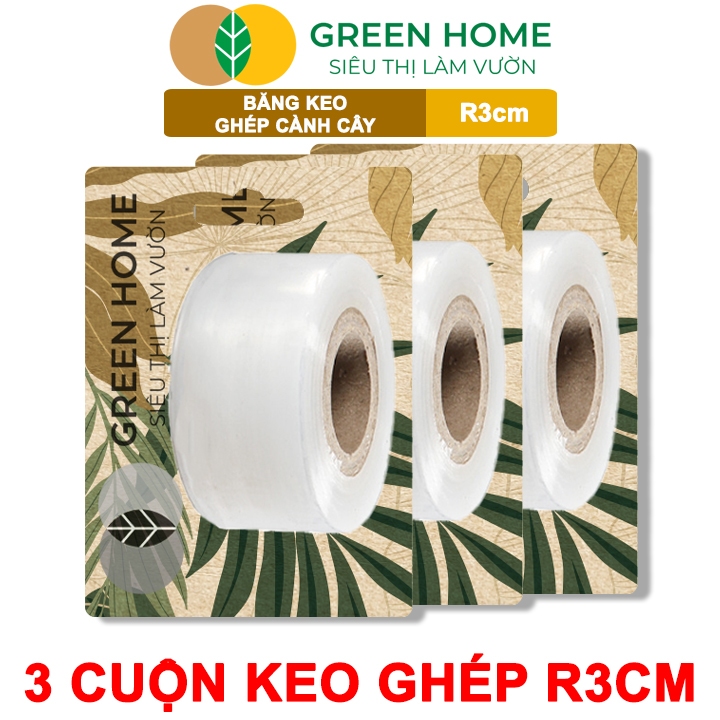 3 Cuộn Keo Ghép Cành GreenHome, R3cm, Dụng cụ làm vườn, Bảo Vệ Mối Ghép Nhanh Liền, Tự Dính, Tự Huỷ