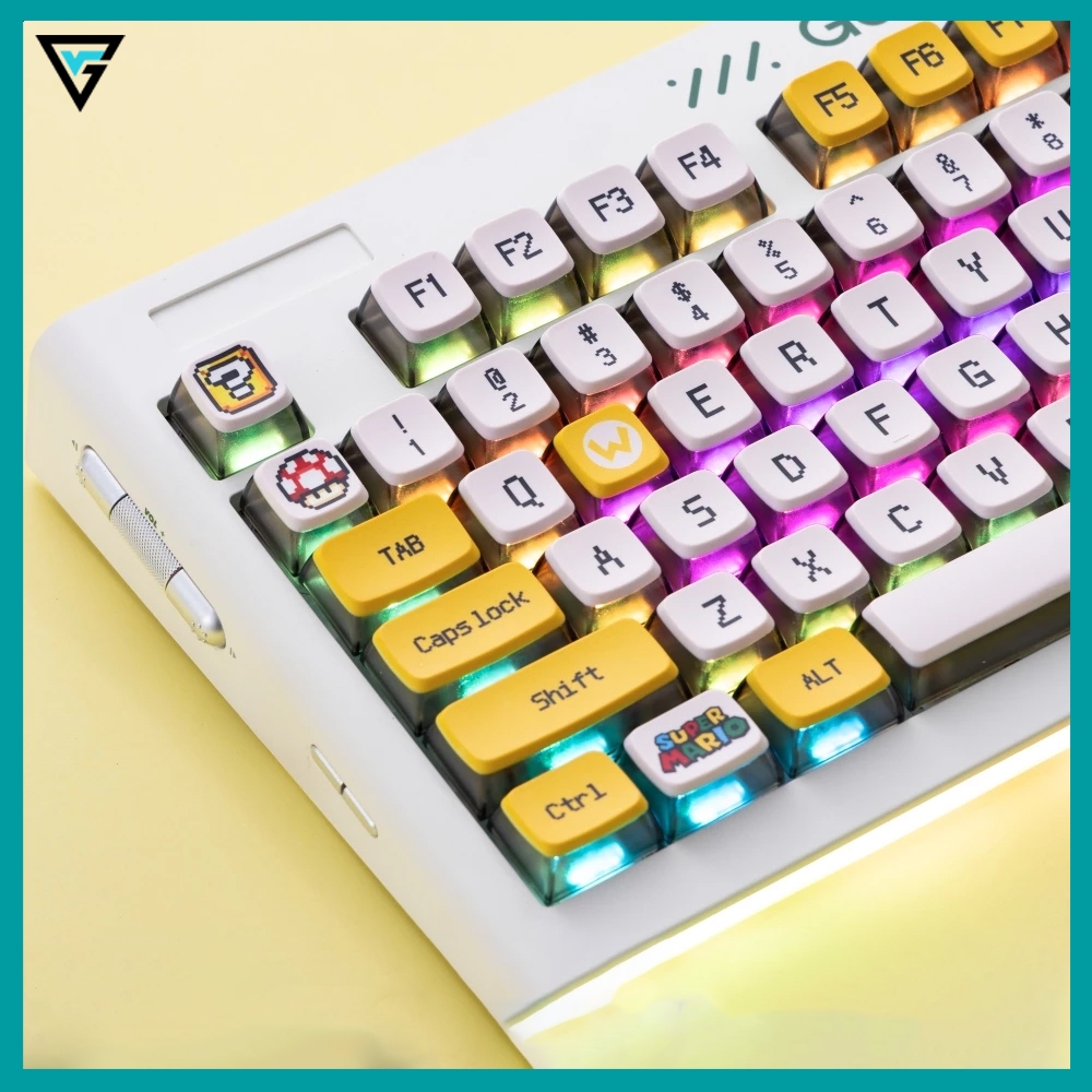 Keycap Pudding Xuyên Led Mario Yellow dành cho bàn phím cơ Nhựa PBT in Dyesub 125 nút