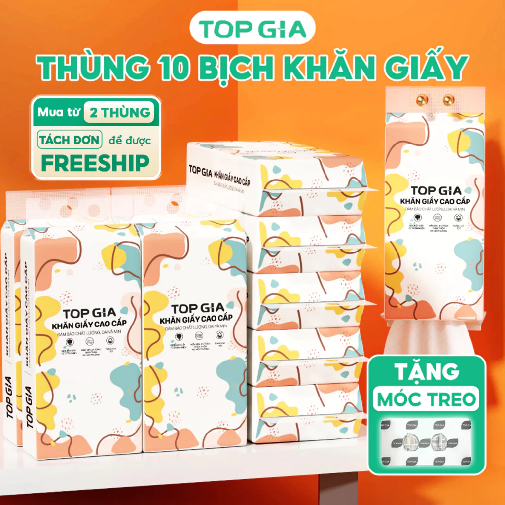 [LOẠI TO ĐẶC BIỆT] Thùng 8 bịch khăn giấy rút Top Gia treo tường đa sắc 1280 tờ, siêu dai và mềm mịn