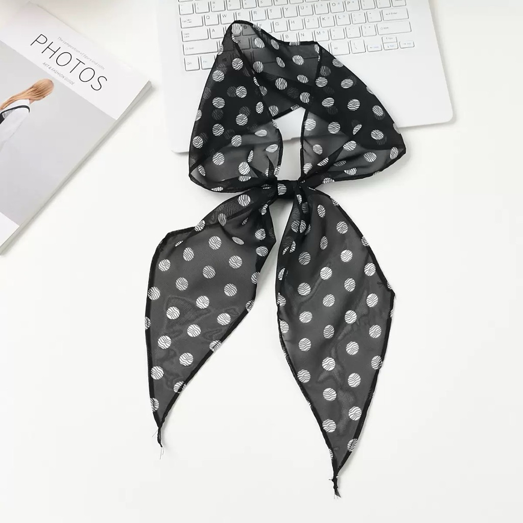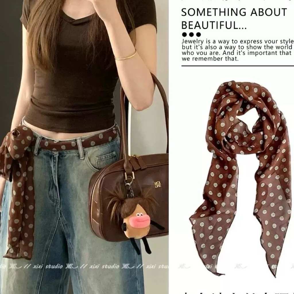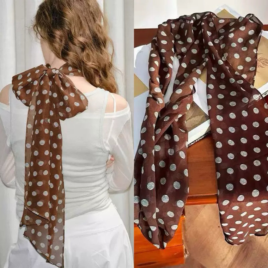 Khăn phụ kiện hoạ tiết chấm bi dáng dài dây turban màu nâu đen quàng cổ hoặc mang đai quần dễ phối đồ cho nữ