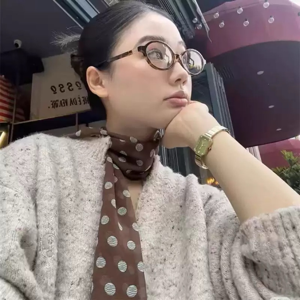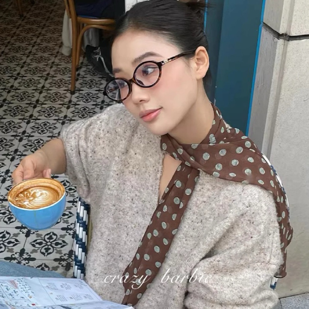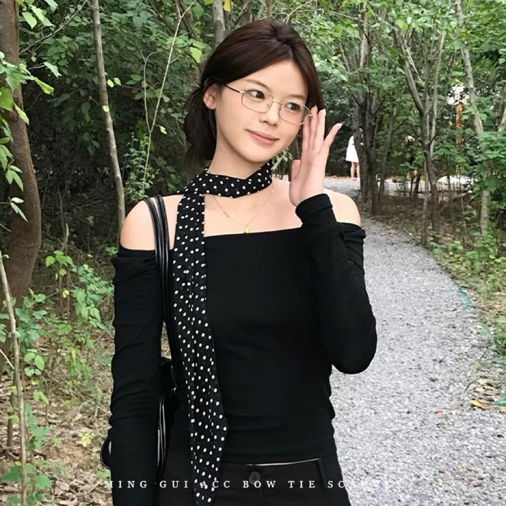Khăn phụ kiện hoạ tiết chấm bi dáng dài dây turban màu nâu đen quàng cổ hoặc mang đai quần dễ phối đồ cho nữ