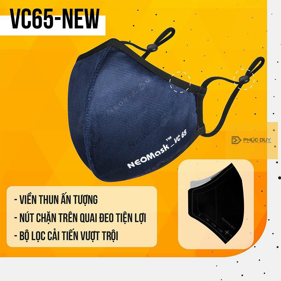 Khẩu Trang NeoMask VC65 Than Hoạt Tính, Lọc Bụi Mịn Khói Xe, Vải Mịn Không Sờn, Tái Sử Dụng Nhiều Lần