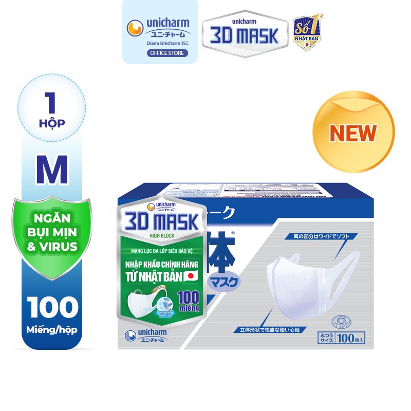 Khẩu trang Unicharm 3D Mask High Block siêu bảo vệ size M hộp 100 miếng