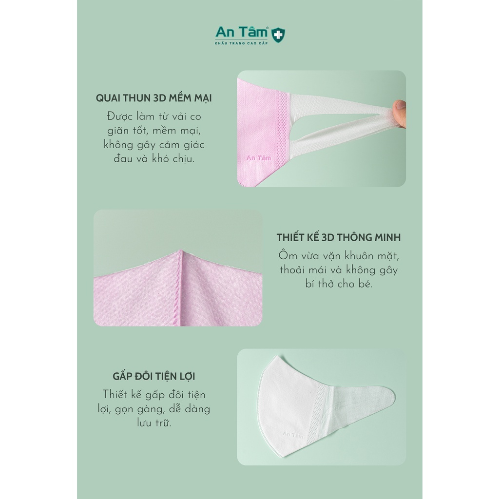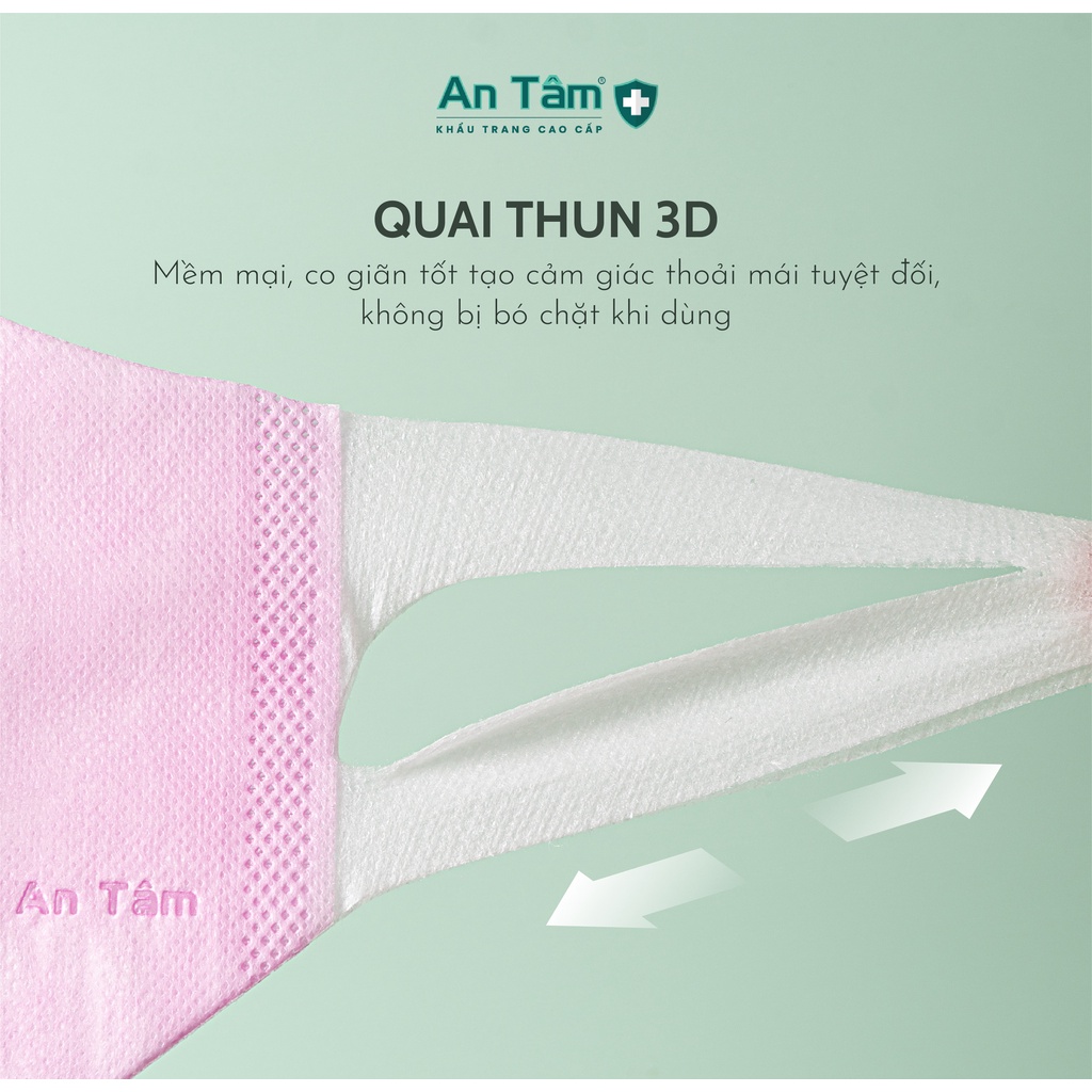 Hộp 50 cái Khẩu trang 3D An Tâm chính hãng công nghệ Nhật Bản, quai vải mềm co giãn thoải mái