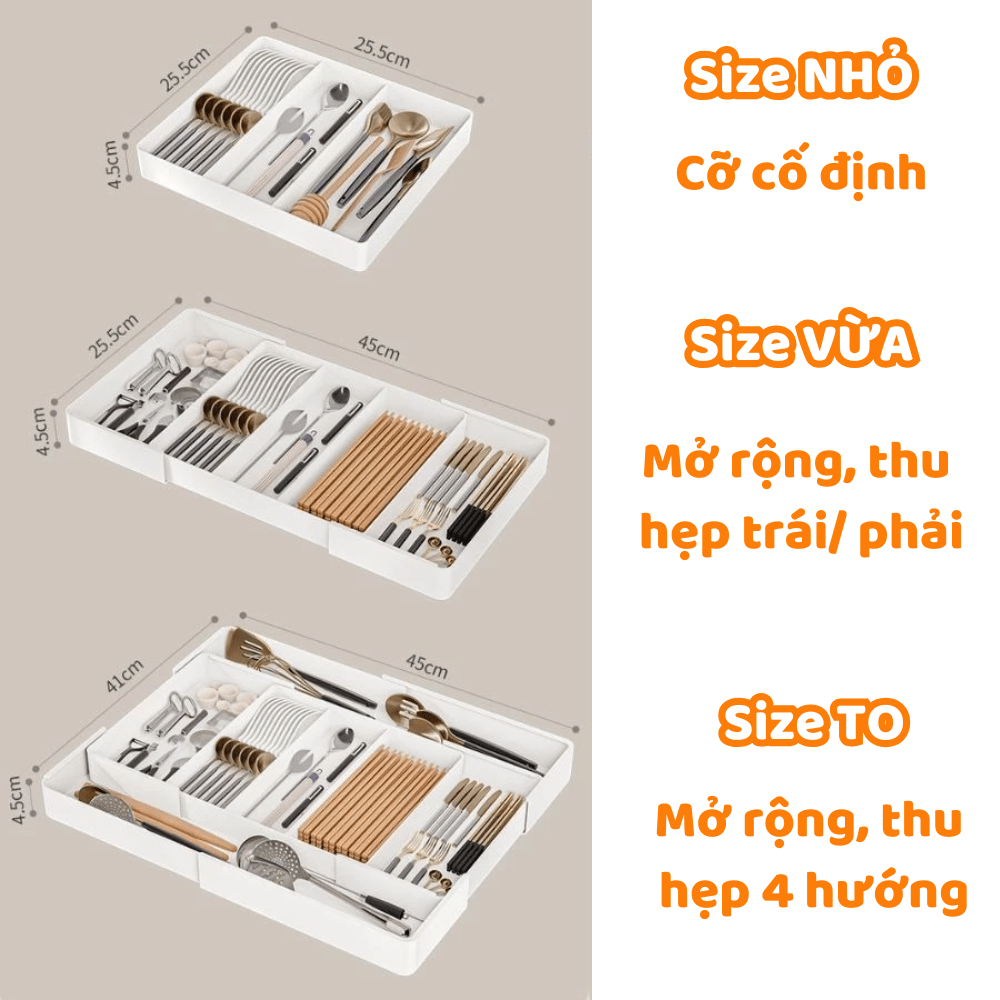 Khay đựng đũa thìa chia ngăn kéo nhà bếp SUNBEAM có thể mở rộng, tháo rời tùy ch ỉnh
