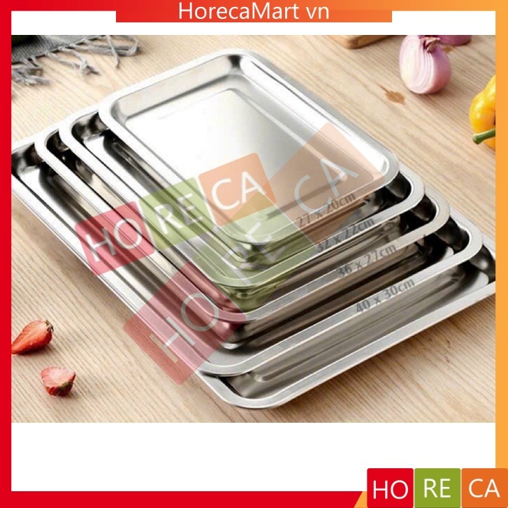 Khay inox chữ nhật [sâu 2cm, sâu 4.8cm] nhiều kích thước, inox dày cao cấp