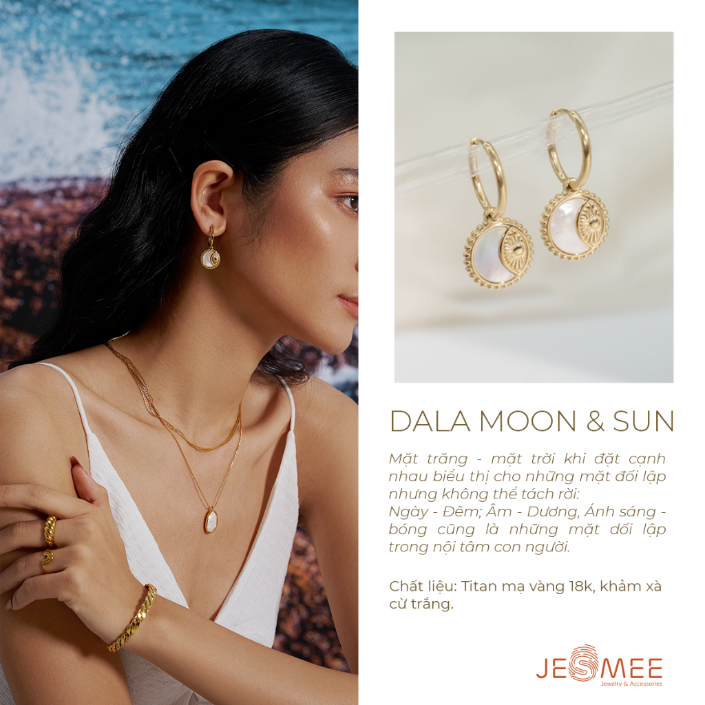 Khuyên tai nữ JESMEE titanium mạ vàng khảm ngọc thô tự nhiên - E6597