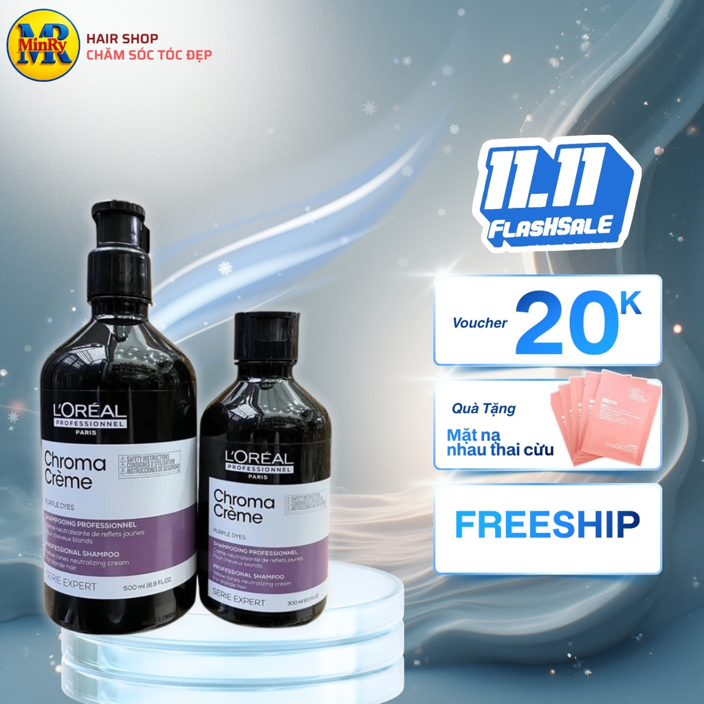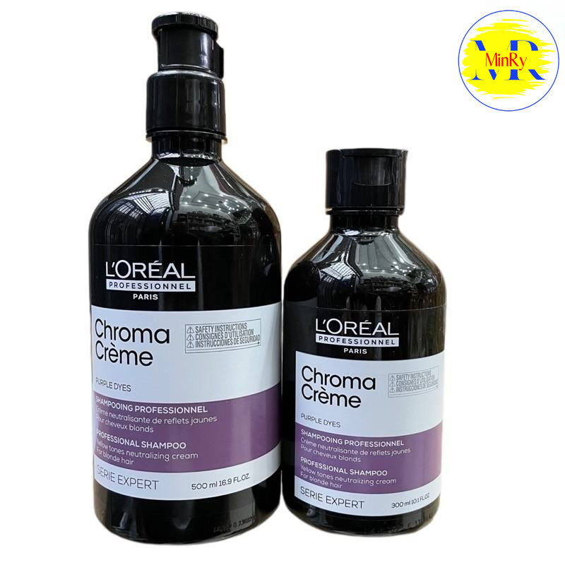 Dầu gội tím L'o.réal khử vàng tóc bạch kim Chroma Crème Purple Shampoo 500ml, giữ màu nhuộm | HAIRSHOP MINRY