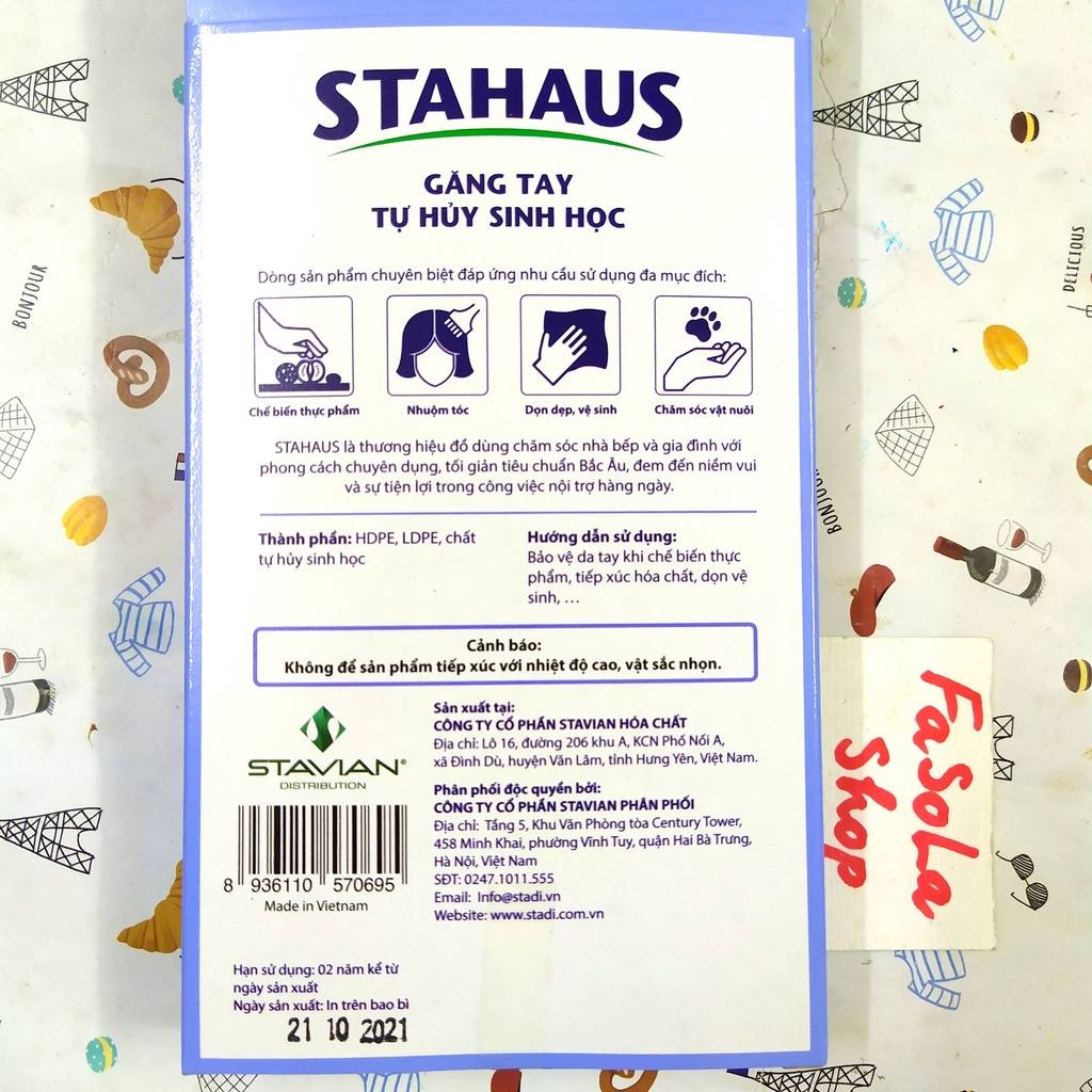 Găng tay nylon STAHAUS STAVIAN 100 chiếc size L tự hủy sinh học thực phẩm ny lông không trơn trượt