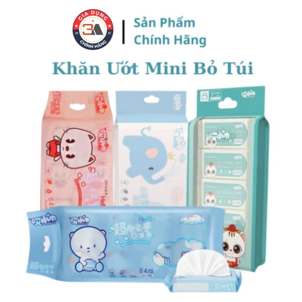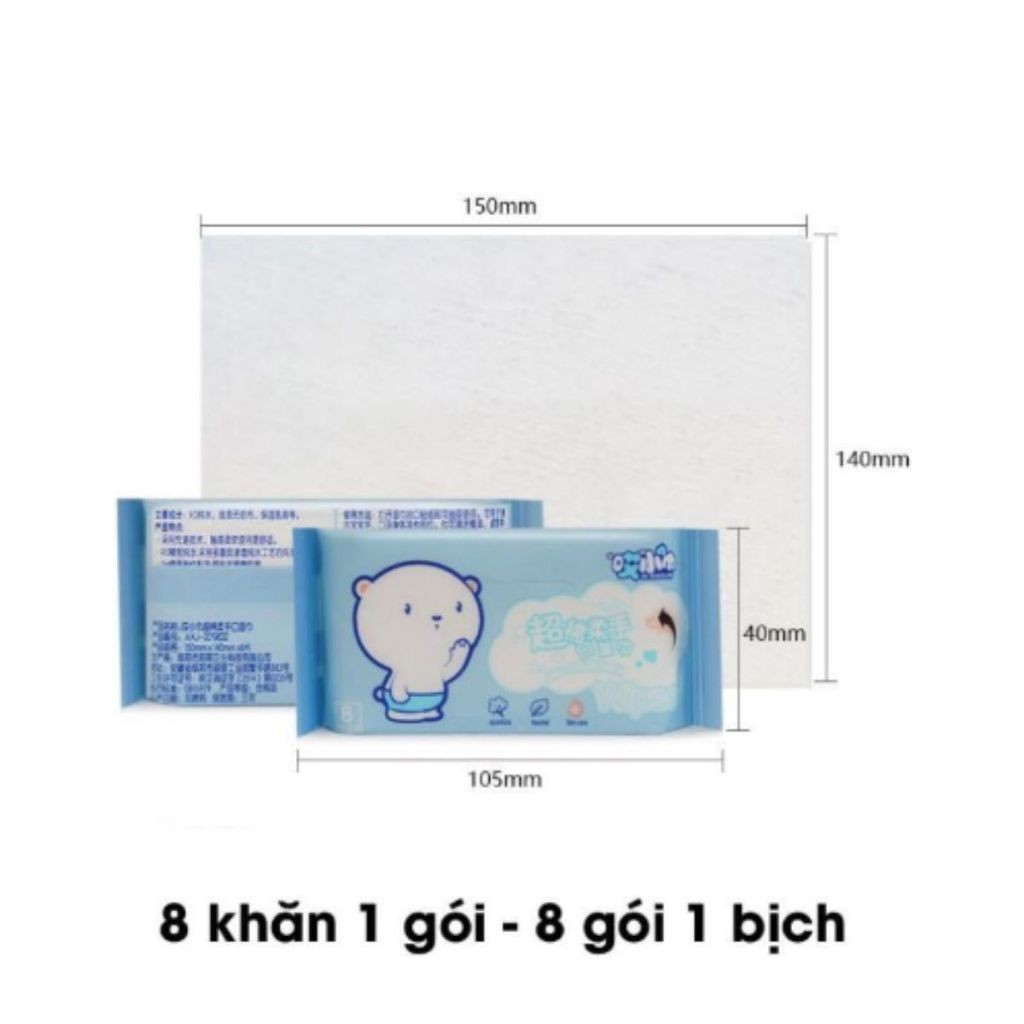 (HỎA TỐC) Set 8 Gói Khăn Giấy Ướt Mini Bỏ Túi Tiện Lợi (Túi 64 tờ) - Khăn Ướt Trẻ Em - Khăn Vệ Sinh, Lau Tay Đa Năng