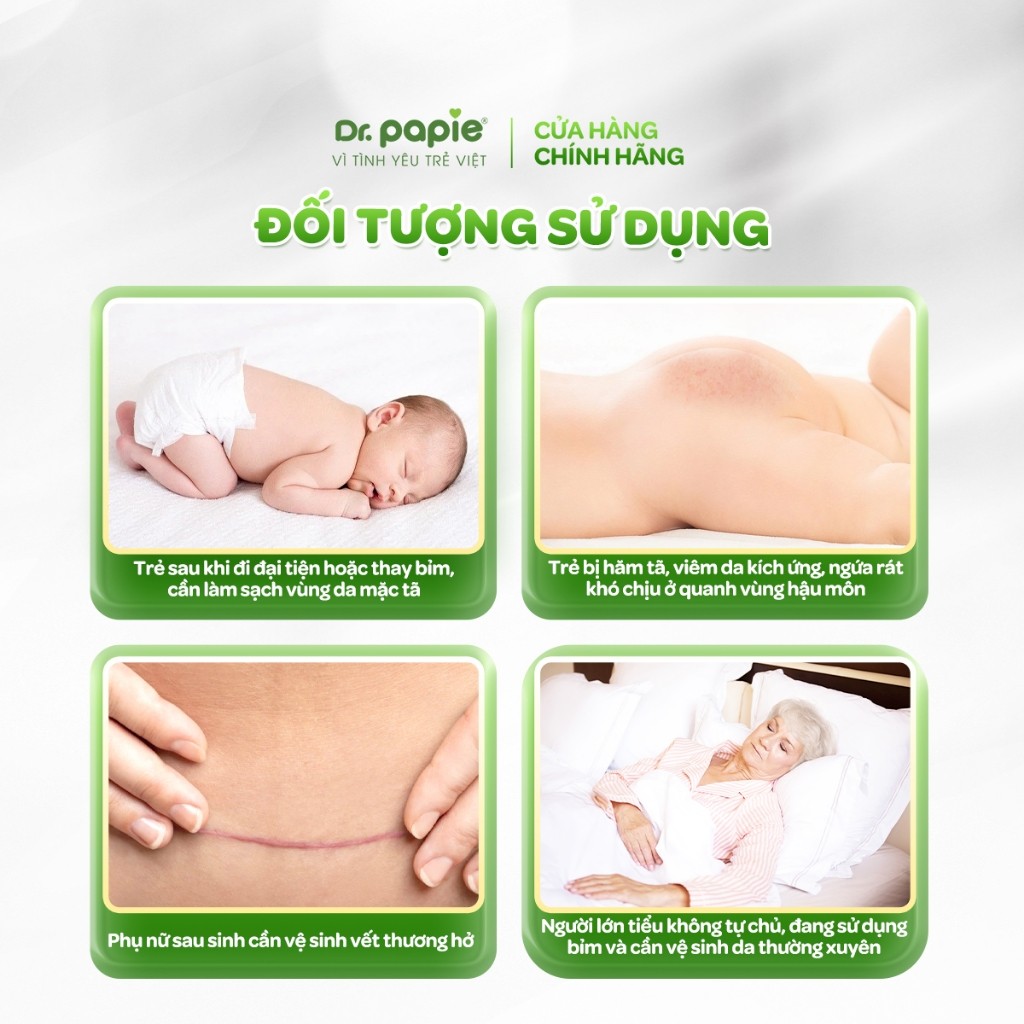 [MỚI] Khăn hăm cao cấp Dr.Papie phục hồi vùng da hăm khử mùi lành tính cho trẻ sơ sinh (80 tờ/gói)