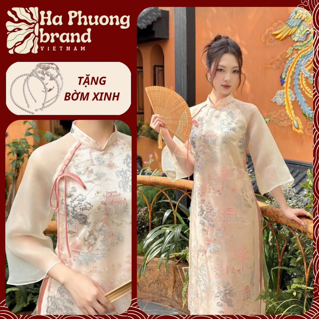 Áo Dài Cách Tân Hạ Uyển Thiết Kế Cao Cấp, Sẵn Dáng Suông 4 tà Cổ Cao Sang Trọng ADCT02