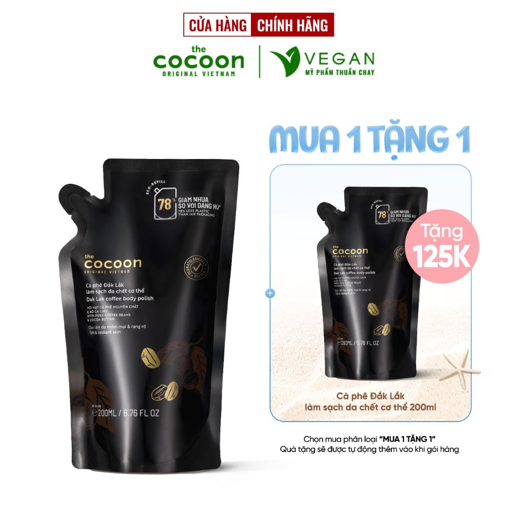 Big size Cà phê Đắk Lắk body làm sạch da chết cơ thể cocoon 600ml thuần chay