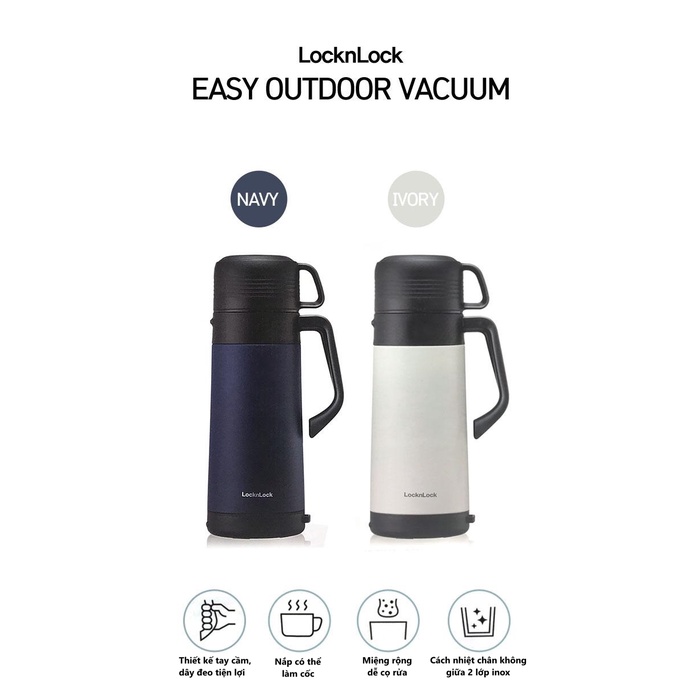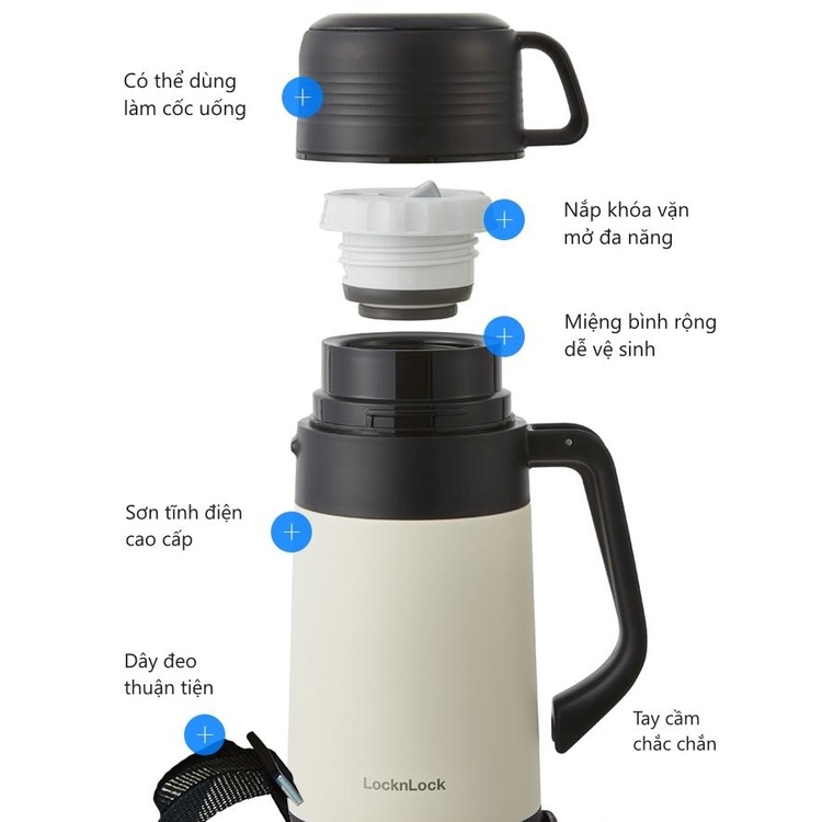 Bình giữ nhiệt LocknLock cỡ đại LHC1484 1,2L và LHC1485 1,8L có quai xách, nắp làm cốc nước - K-MALL