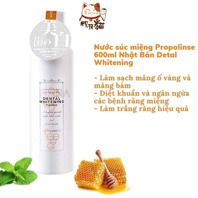 Nước súc miệng Propolinse Nhật Bản giúp làm sạch, sạch mảng bám, giảm hôi miệng, hơi thở thơm mát 600ml