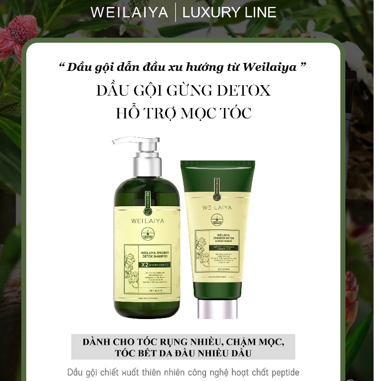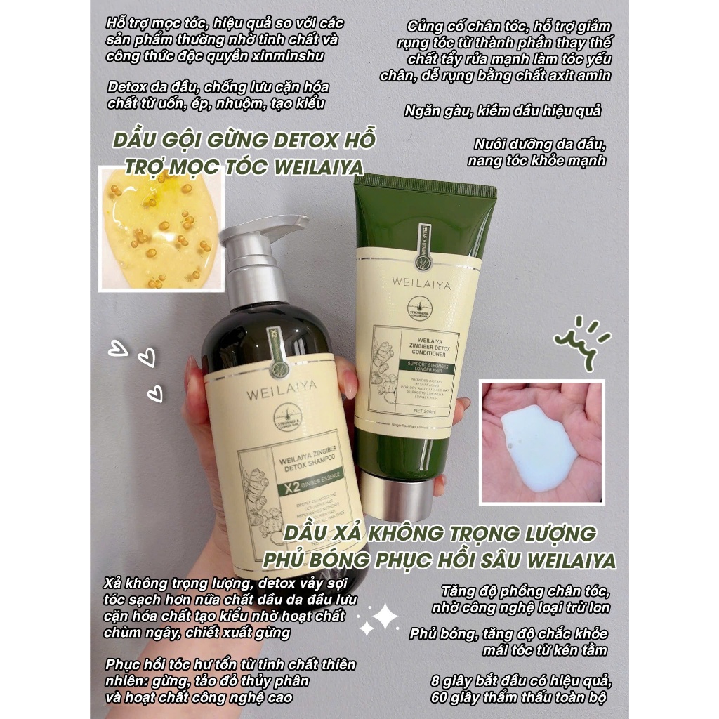 Cặp dầu gội xả tóc thảo dược Weilaiya gừng giúp detox, chống lão hóa da đầu và hỗ trợ mọc tóc cho da đầu dầu bết