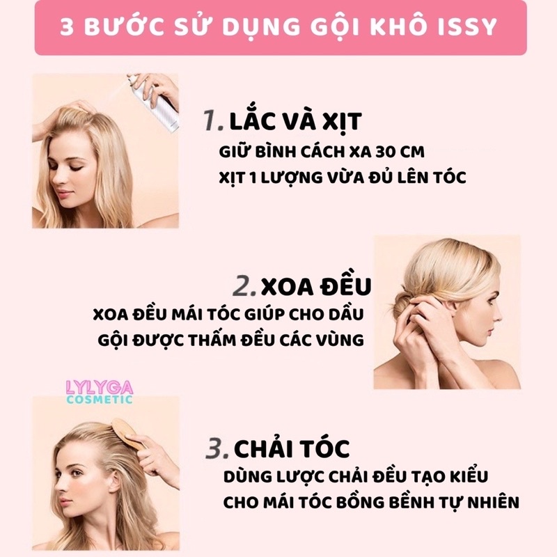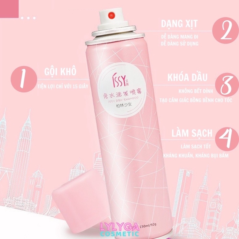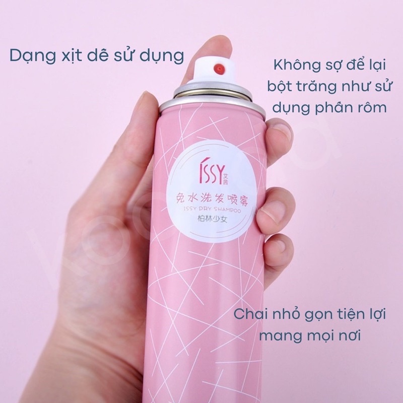 Dầu gội khô Issy dạng xịt không bết dính làm sạch nhanh giúp tóc bồng bềnh mượt mà 150ml