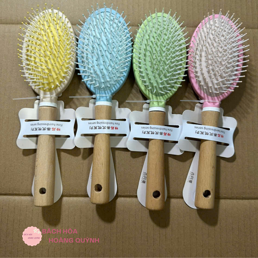 Lược gai gỡ rối tóc, tạo kiểu tóc, massage da đầu loại OVAL cán gỗ xinh xắn.