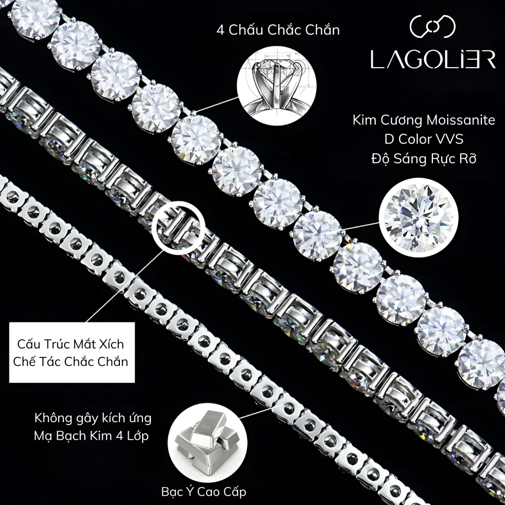 Lắc Tay Classic Tennis Bạc Ý Cao Cấp Lagolier đính đá ECZ