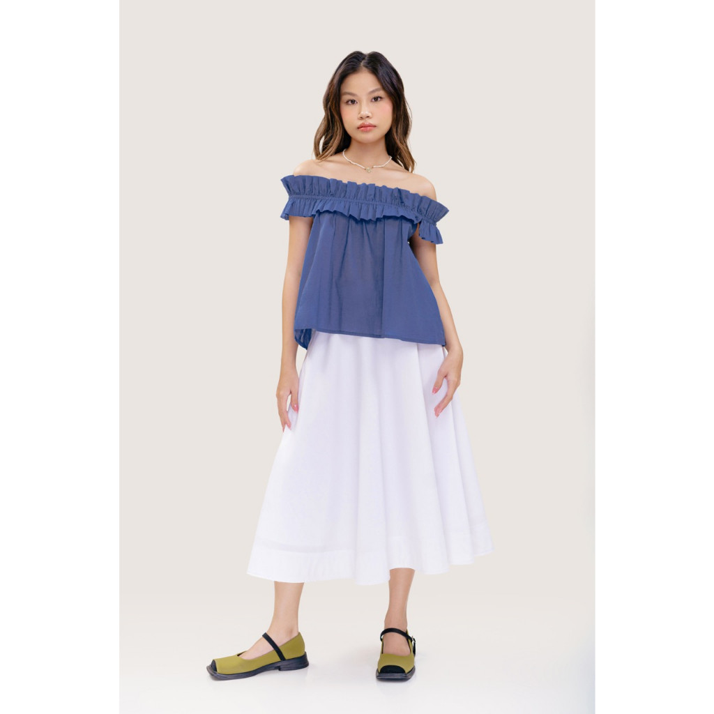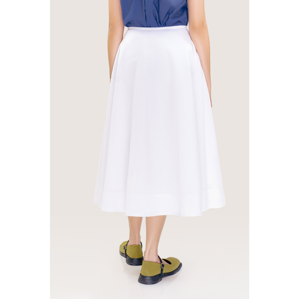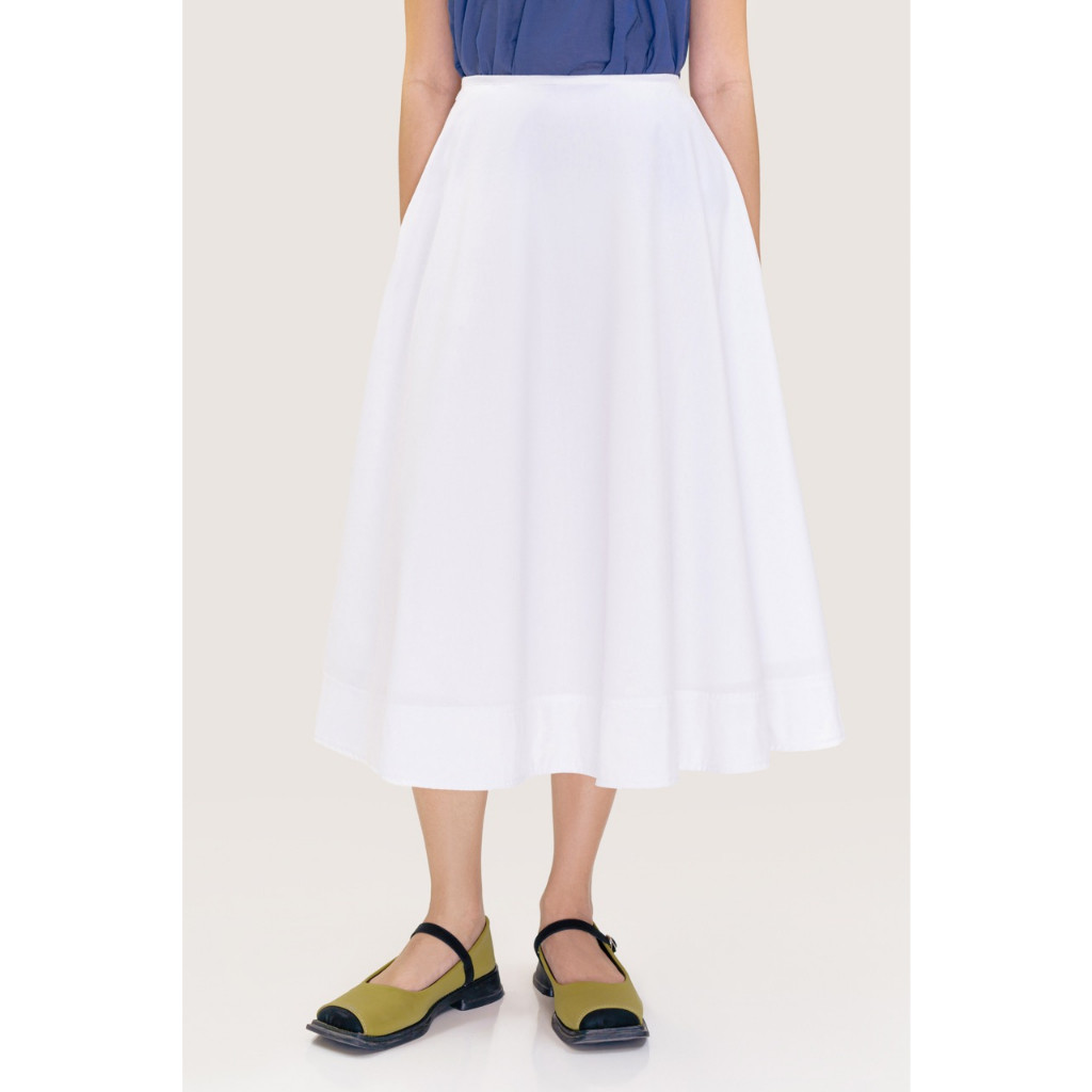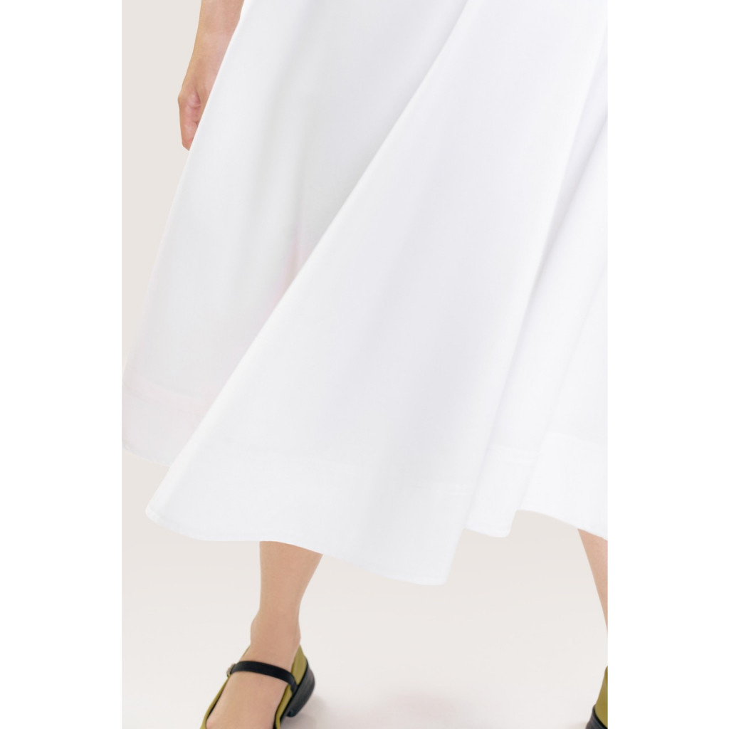 LIBÉ - Chân váy xoè cánh quạt dài qua gối màu trắng