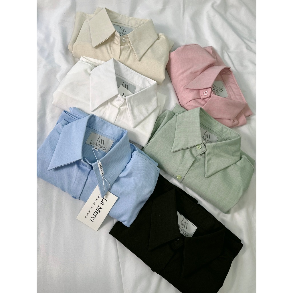 La Merci - Áo Sơ Mi Nữ Chất Vải Cotton Xước Thái Phong Cách Công Sở Cá Tính, Size SM SA09S
