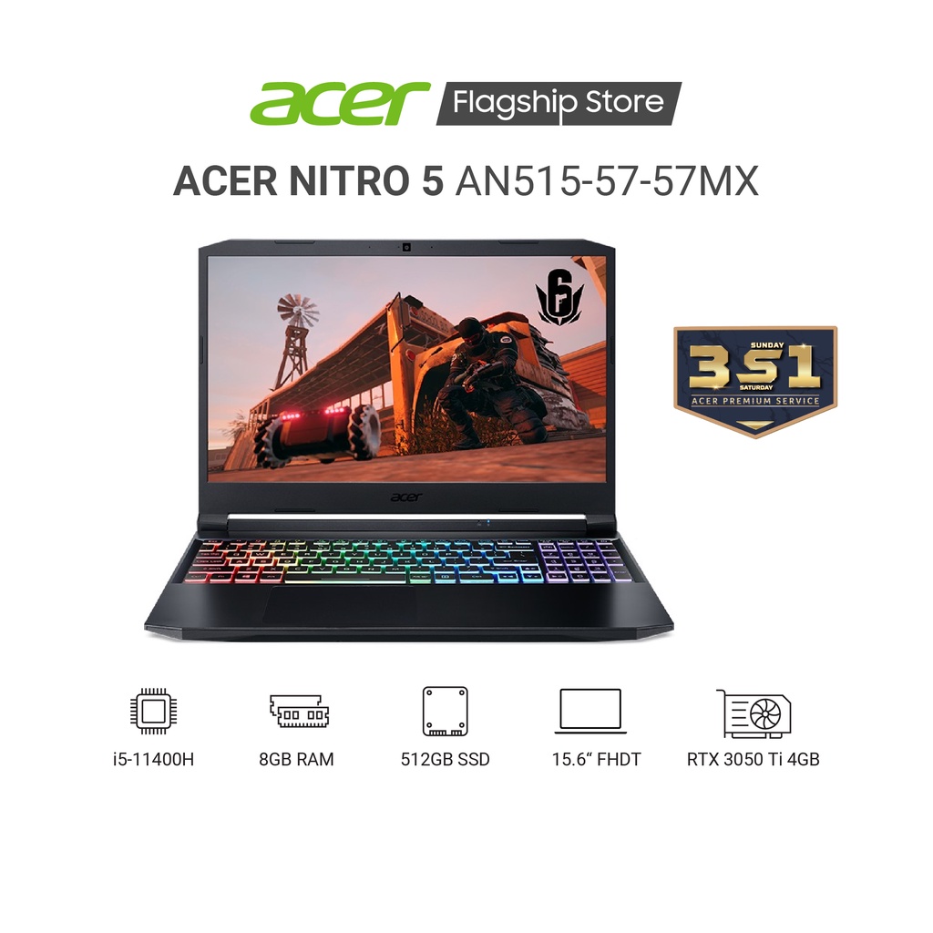 Laptop Acer Nitro 5 AN515-57-57MX, Core i5-11400H, 8GBRAM, 512GBSSD, RTX 3050Ti 4GB,