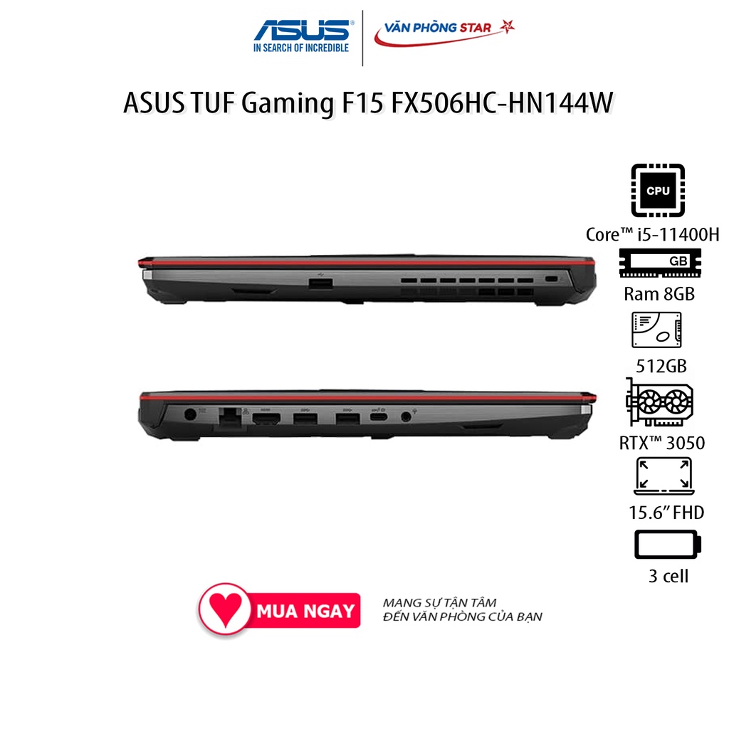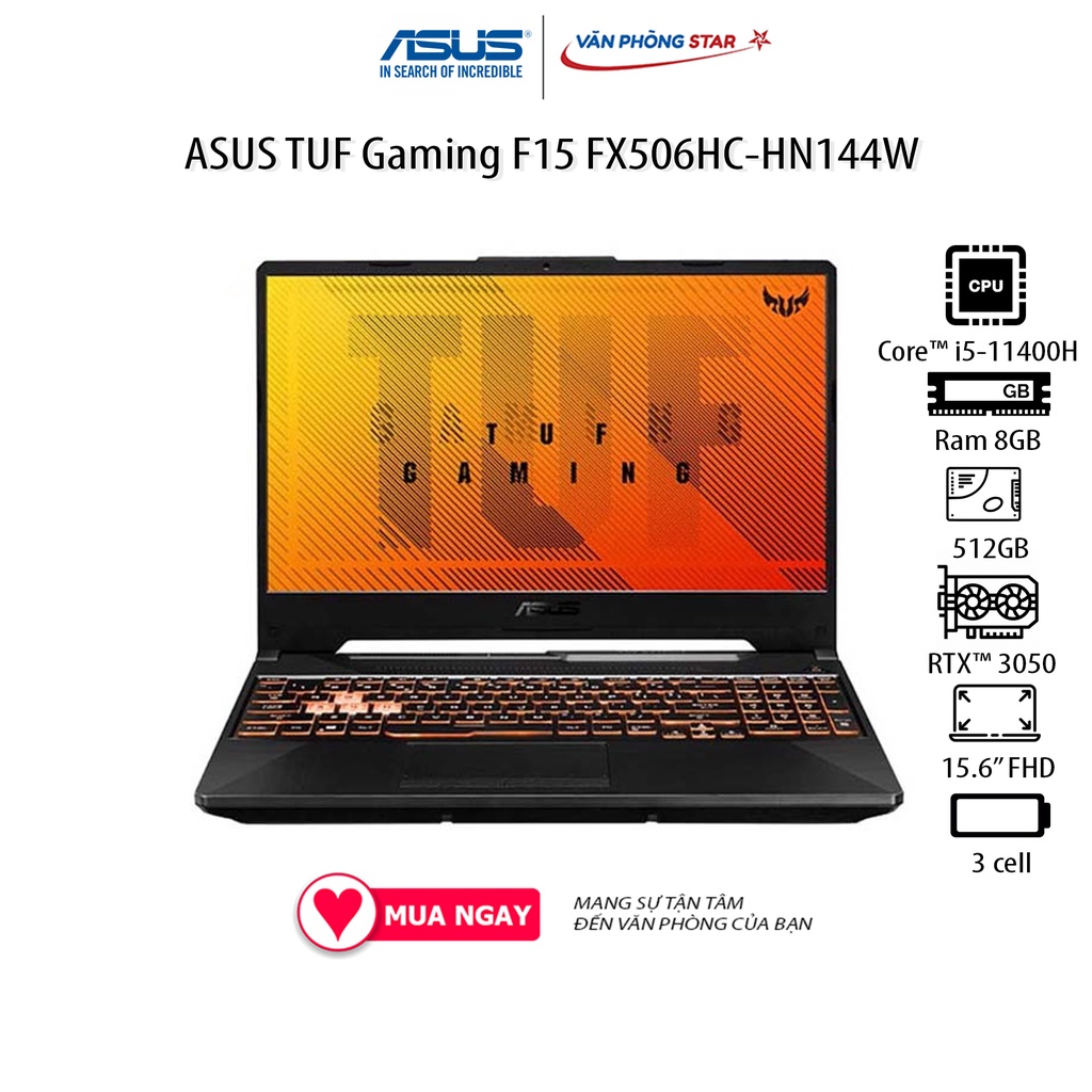 Laptop ASUS TUF Gaming F15 FX506HC-HN144W (Core™ i5-11400H | 8GB | 512GB | RTX™ 3050 4GB | 15.6 inch FHD | Win 11)