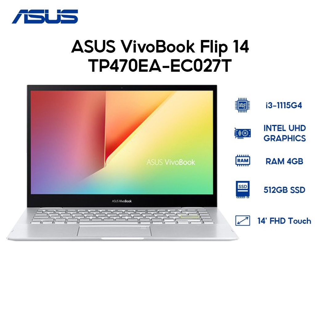Laptop ASUS VivoBook Flip 14 TP470EA-EC027T i3-1115G4 | 4GB 512GB 14' FHD Touch W10