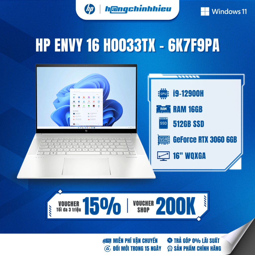 Laptop HP Envy 16-h0033TX 6K7F9PA i9-12900H |16GB |512GB |RTX™ 3060 6GB