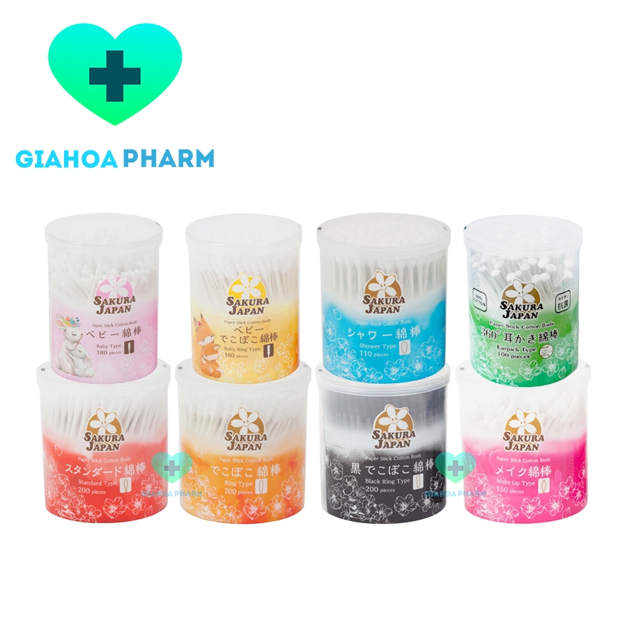Tăm bông kháng khuẩn thân giấy Sakura dành cho người lớn, trẻ em (lấy ráy, ngoáy tai, vệ sinh rốn, mắt, mũi, trang điểm)