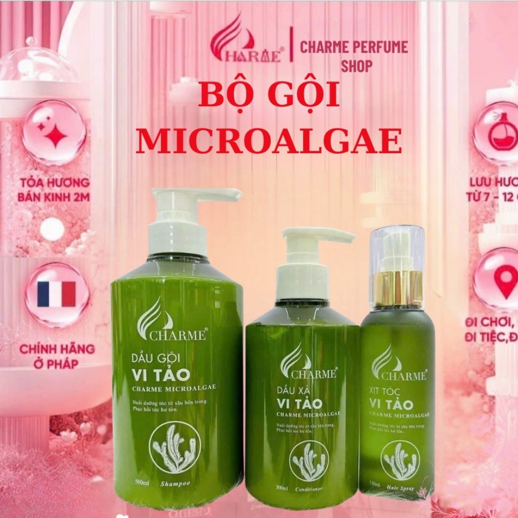 Combo Gội Xả Xịt tóc Vi tảo Charme 𝐌𝐢𝐜𝐫𝐨𝐚𝐥𝐠𝐞𝐚 bảo vệ và dưỡng tóc