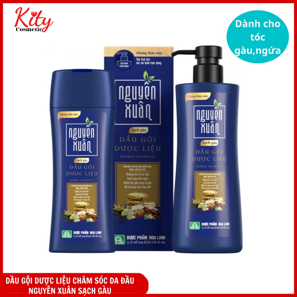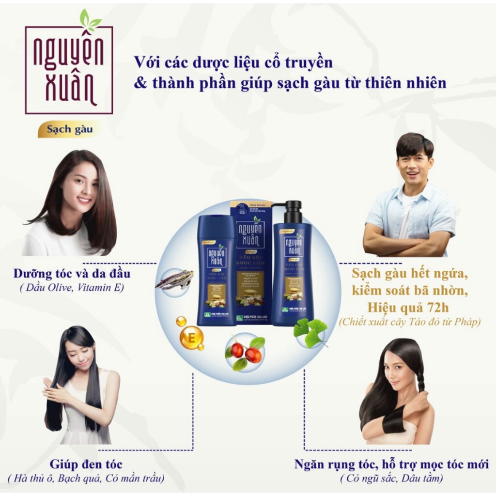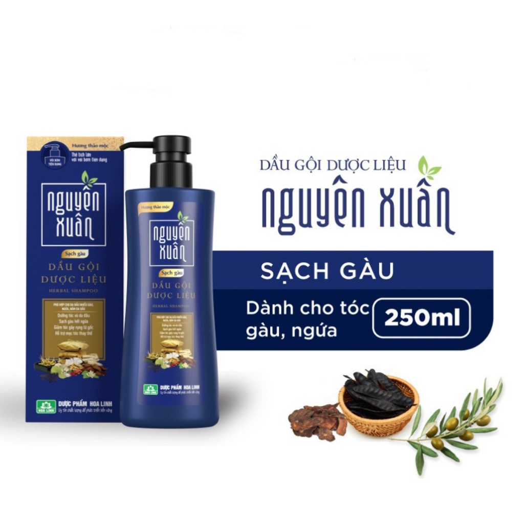 Dầu gội dược liệu Nguyên Xuân xanh dương dành cho da đầu nhiều gàu, dưỡng tóc mềm mượt