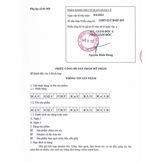 Dầu gội nhuộm đen tóc phủ bạc Blu hair thảo dược 200ml