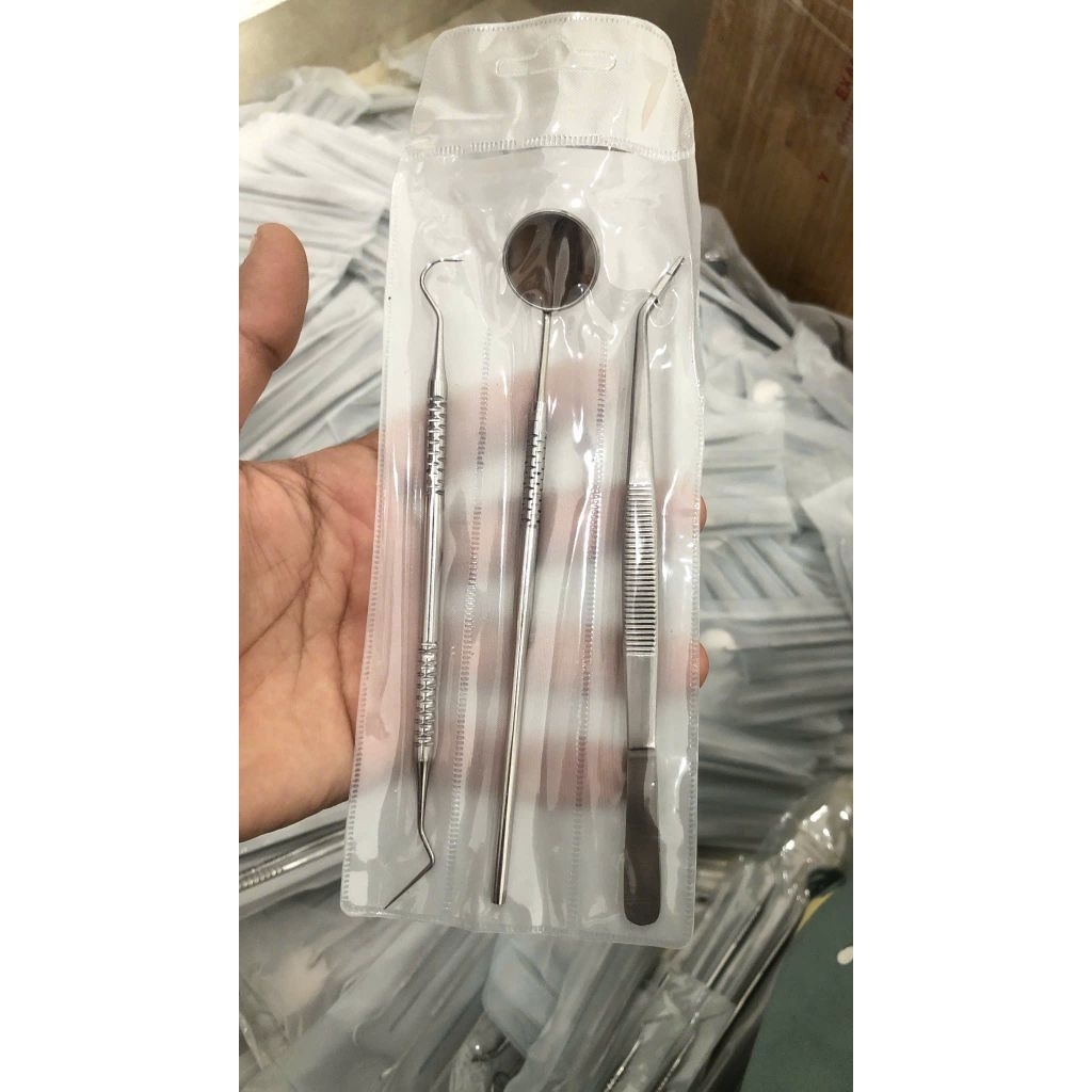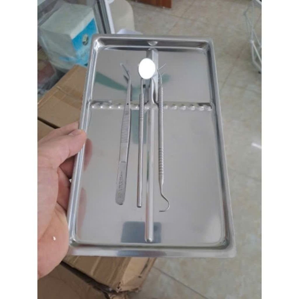 Bộ Khám Nha Khoa Kèm Khay Chữ Nhật - Bộ 4 Món Bằng Thép Không Gỉ