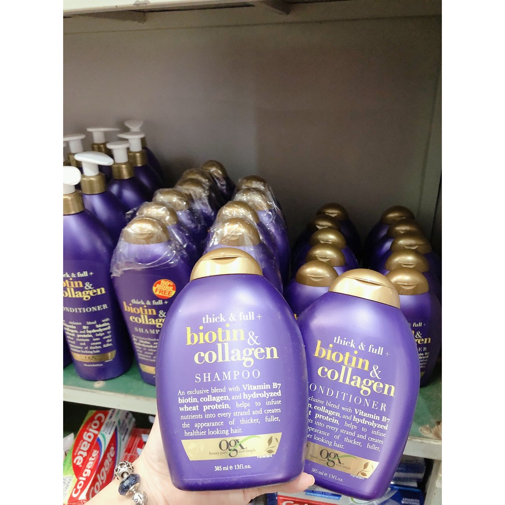 Bộ 2 Chai Dầu Gội Và Dầu Xả Dưỡng Dày Tóc OGX Thick & Full + Biotin & Collagen (385ml/Chai)